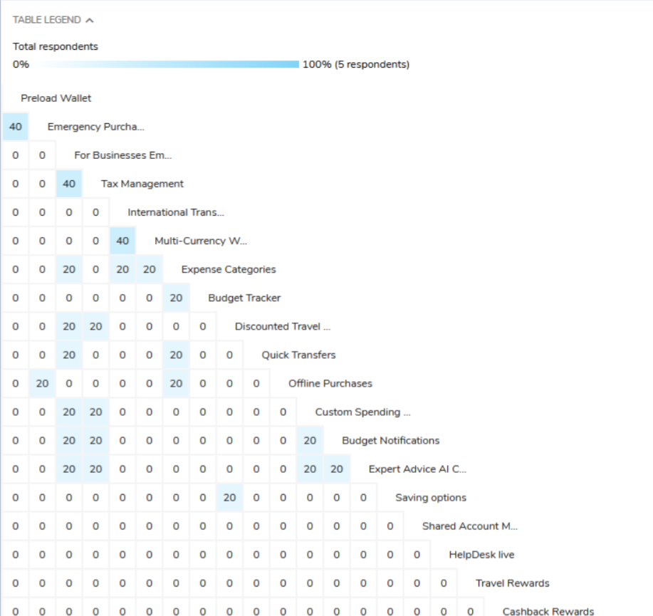 Users grouped Preload Wallet and Emergency Purchases under travel-related finances.