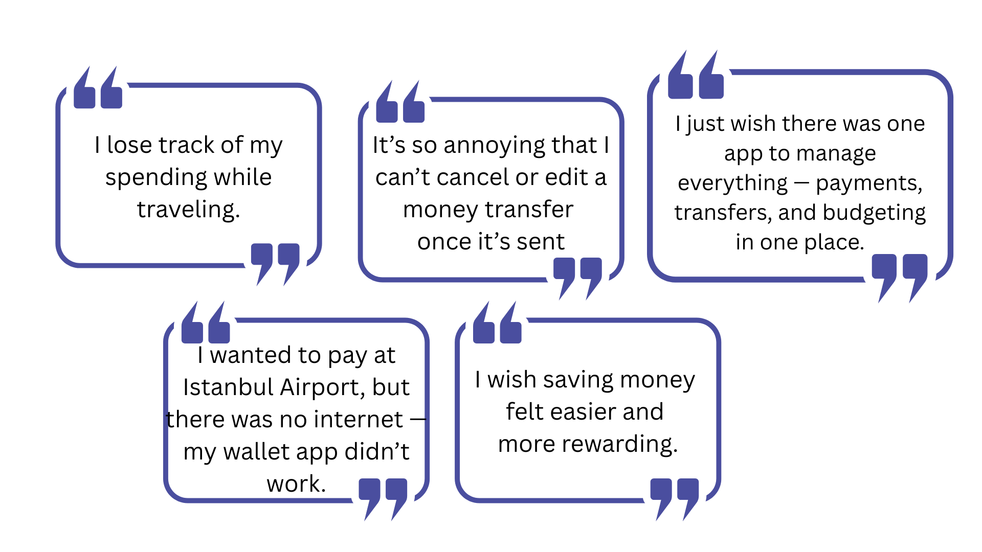 At the start of this project, I conducted 3 in-depth user interviews via Zoom as my qualitative research method. The participants were frequent travelers, and for them, using an e-wallet app was an essential part of managing money abroad. These interviews helped uncover pain points around money transfers, offline payments, and budgeting on the go.