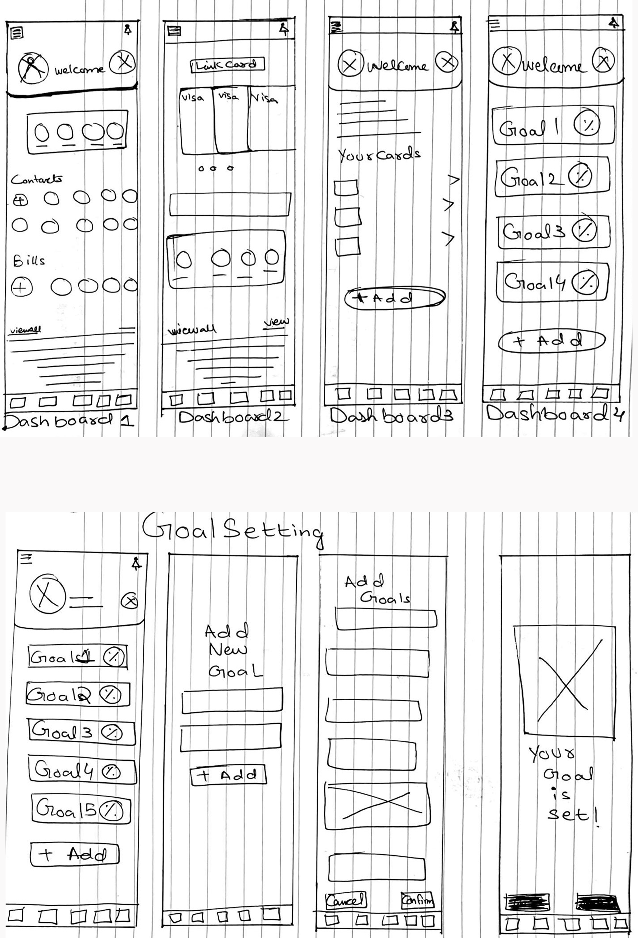 I’m showcasing a selection of sketches and Lo-fidelity, mid-fidelity wireframes here from the larger set created during this process.
