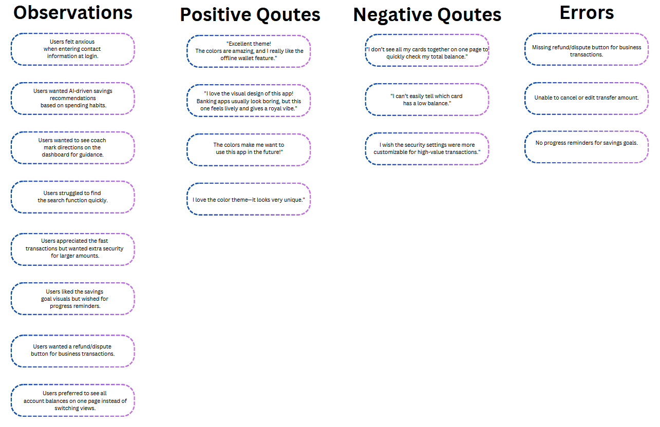 Through user research, testing, and iterative design, I developed an easy-to-use app featuring international transfers, offline wallet access, budgeting tools, and travel rewards. This project strengthened my skills in UX research, prototyping, and usability testing while sparking a deeper interest in fintech solutions.
